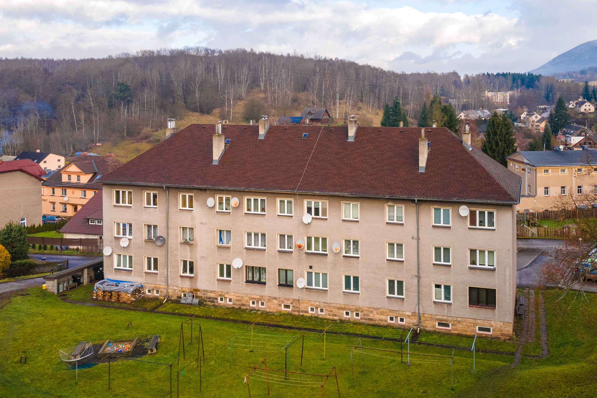 okolí bytového domu zezadu